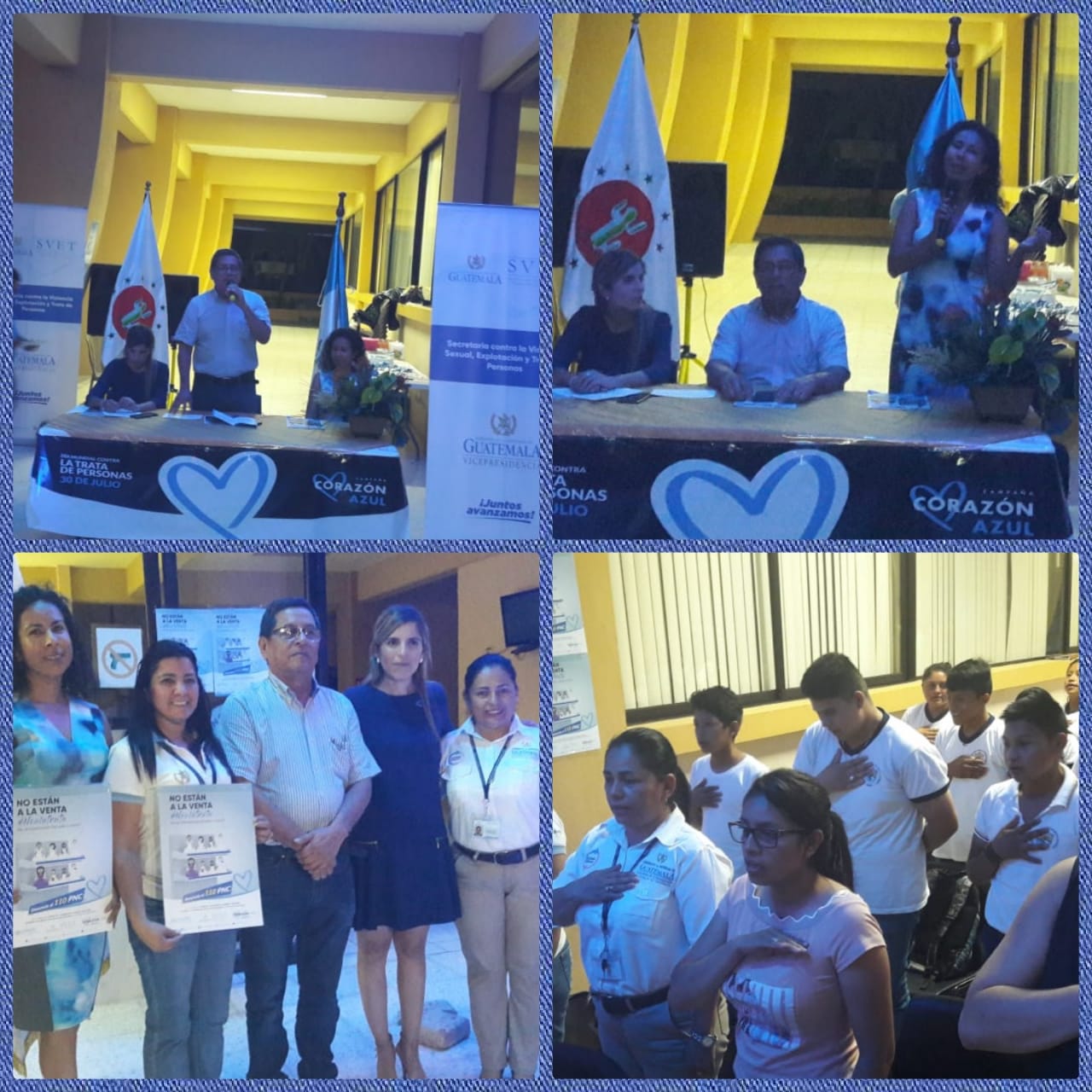 El Consejo Regional de Desarrollo Urbano y Rural Región Nororiente, a través la Secretaría contra la Violencia Sexual, Explotación y Trata de Personas. Con el Objetivo de conmemorar el Día Mundial Contra la Trata de Personas, coordino un acto simbólico, iluminando el Centro de Gobierno de color azul, así mismo instando a unificar esfuerzos para dar fin a la trata de personas y otros delitos que se cometen en contra de la niñez y la adolescencia, espacio que permitió la promoción Campaña Corazón Azul contra la trata de personas en el cual se cuenta con el apoyo del señor Gobernador de Zacapa, Señora Alcaldesa, estudiantes de nivel básico, Enlace de la Unidad de Género de la SCEP, UPCV, MOPSIC-PNC, PDH, SBS, MSPAS, Espacio Amigable Niños y Adolescentes de Rio Hondo, Escuela de Trabajo Social de la Universidad de San Carlos de Guatemala, Dirección Municipal de la Mujer del municipio de Zacapa, APROFAM y medios de comunicación social.